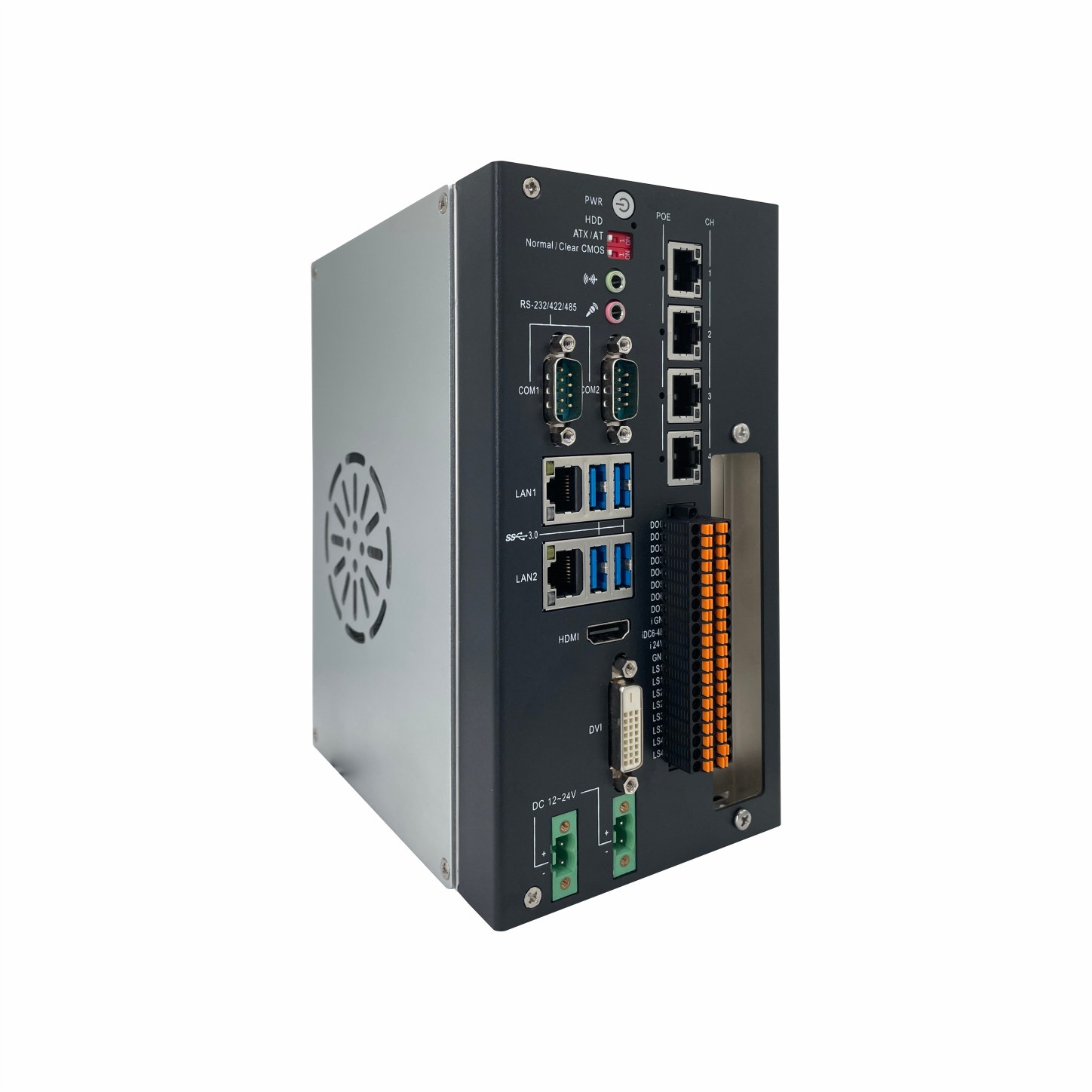 ? 鋁合金壓鑄散熱器+內(nèi)置智能風扇 - 產(chǎn)品詳情該產(chǎn)品采用 LGA1151 CPU Socket 基于 Intel H110 芯片組設計的高性能、高可靠工業(yè)級 2 串口,2 網(wǎng)口,4POE,GPIO16 路,8 路隔離 DI, 8 路隔離 DO,4 通道光源控制器,把視覺應用中的高性能處理器工控機以及光源控制器功能融為一體的軌道式臺式機整機。整機采用全鋁合金壓鑄散熱片和鈑金相結合,以大面積散熱片加智能風扇進行散熱。DVI 和 HDMI,二種顯示輸出,可實現(xiàn)雙顯示輸出,HDMI 支持雙 4K 60Hz 超高清顯示。DC12V~24V 供電。該產(chǎn)品最大特點提供 4 路光源 PWM 控制接口;4 路光源外部觸發(fā)信號輸入,和 16 路隔離 DI/DO 可供用戶進行功能自定義。被廣泛用于智能交通,醫(yī)療制藥、機器視覺、包裝、自動化工廠、環(huán)境檢測、運動控制等領域。